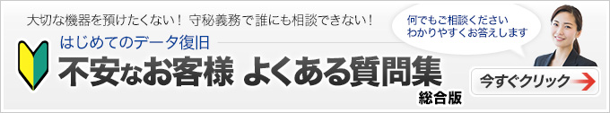 | お客様の声 | 複数名で共有して使用しているものでしたので、ハッキリと必要データが分かっている状態ではありませんでしたが、取り出せるデータのリストを見せて頂くことができましたので、希望しているデータを漏れなく復旧することが出来ました。 |