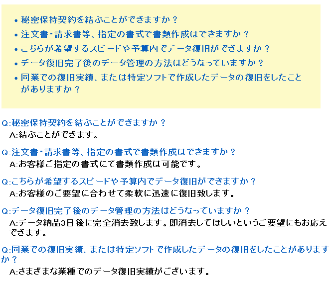 | データ復旧の 作業内容 |