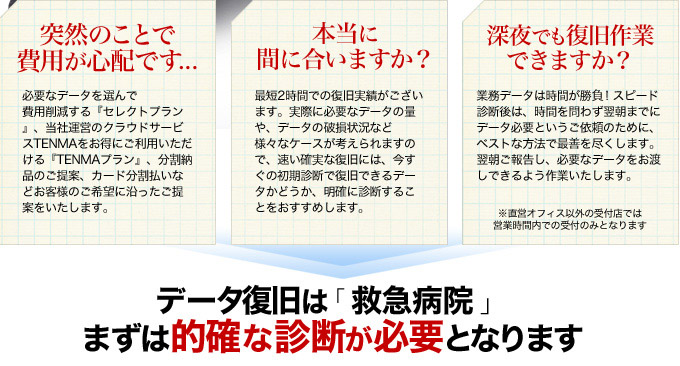 復旧できるデータの内容が明確になりますので、正確なお見積りがお伝えできます。