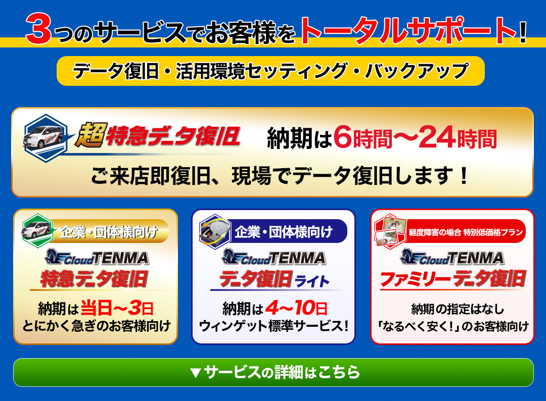 今回はデータ復旧に成功いたしましたが、場合によっては復旧が困難になるケースもございます。何か異常な症状が出ましたらすぐにウィンゲットまでご相談下さい。