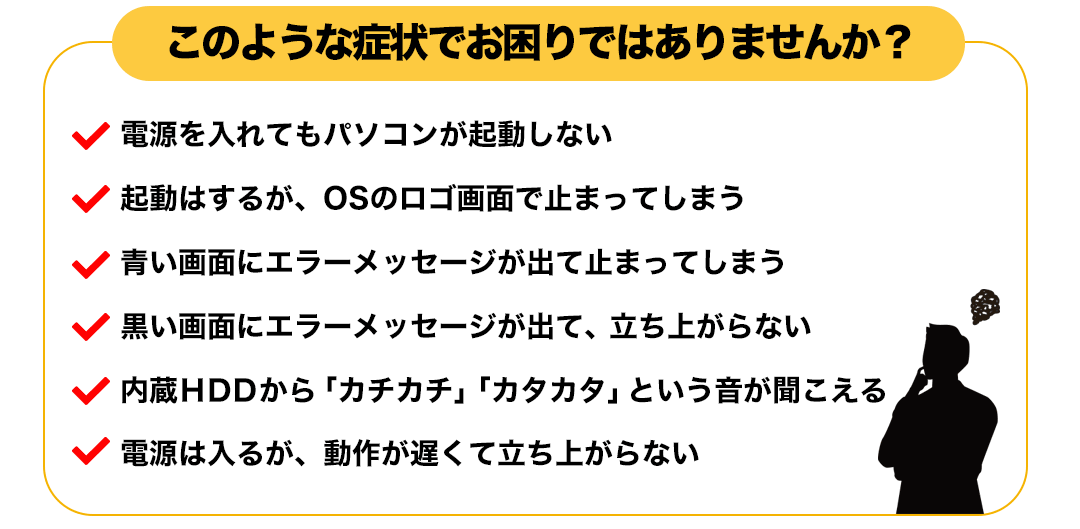 先日までちゃんと使用出来ていたが、週明けに出社するとPCのOSが起ち上がらなくなりました。
