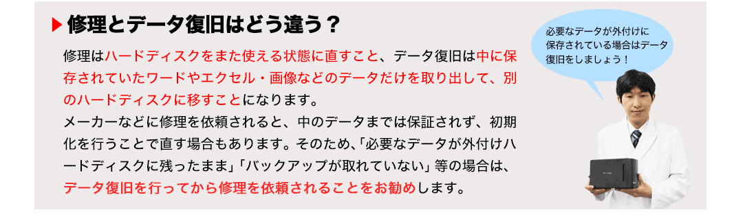 業務で使用している写真・図面のデータがあるので早急にデータの復旧をして頂きたいです。