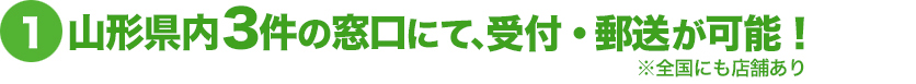 お客様の近くで対応できるよう、山形には3箇所の窓口があり、それぞれ簡易診断や受付が可能です。また、全国各地に窓口を設けております。店舗への持込が難しい地域の方々には、ご郵送での受付も行っております。